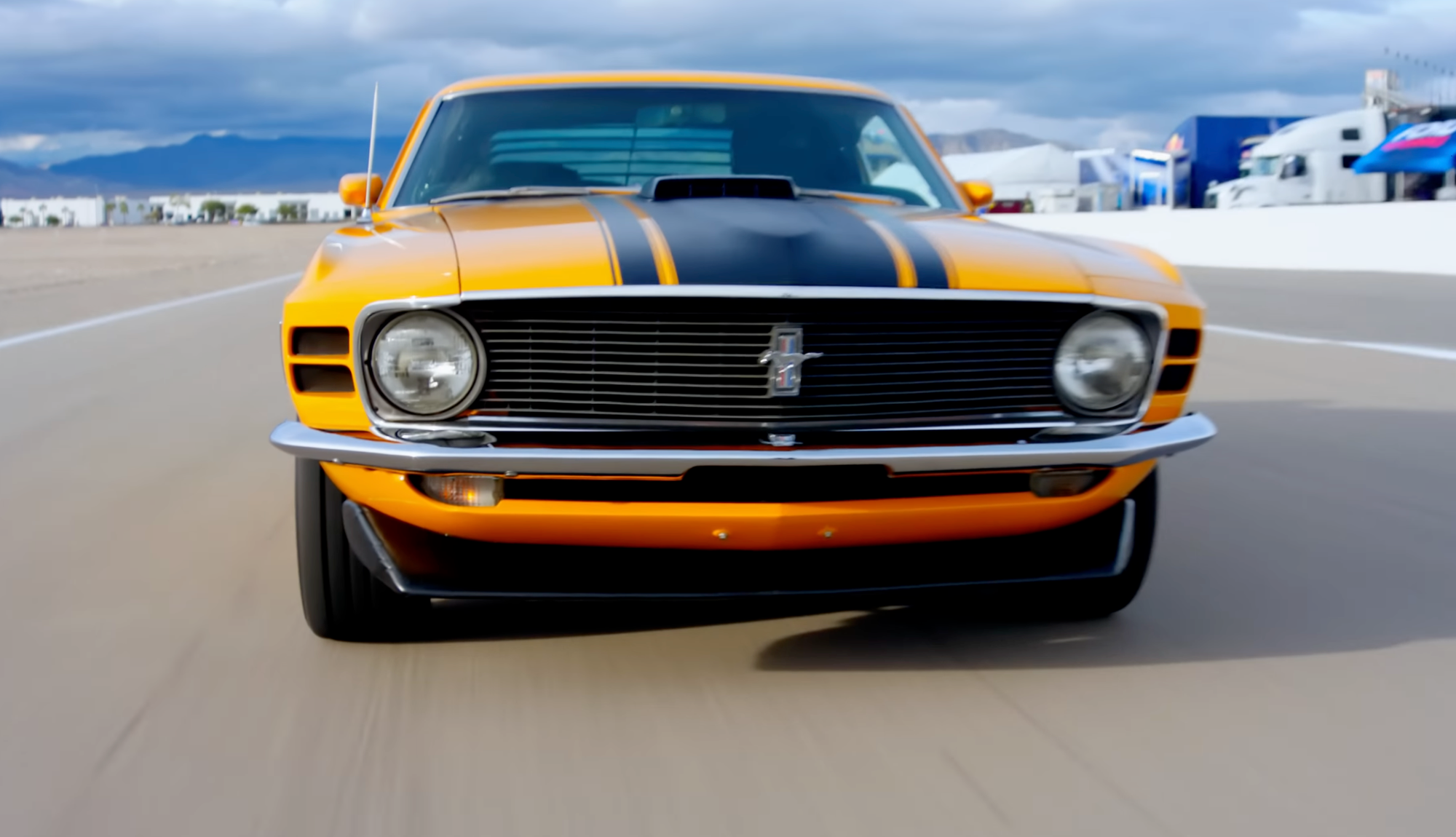 The cornering challenge brought out a '26 Mustang Dark Horse SC vs. the OG 1966 GT40. Even though sixty years separated the two cars, somehow only four seconds separated the lap times. The GT40 managed 41 seconds while the Dark Horse posted 37.81. Granted, the GT40 won Le Mans before, but still.