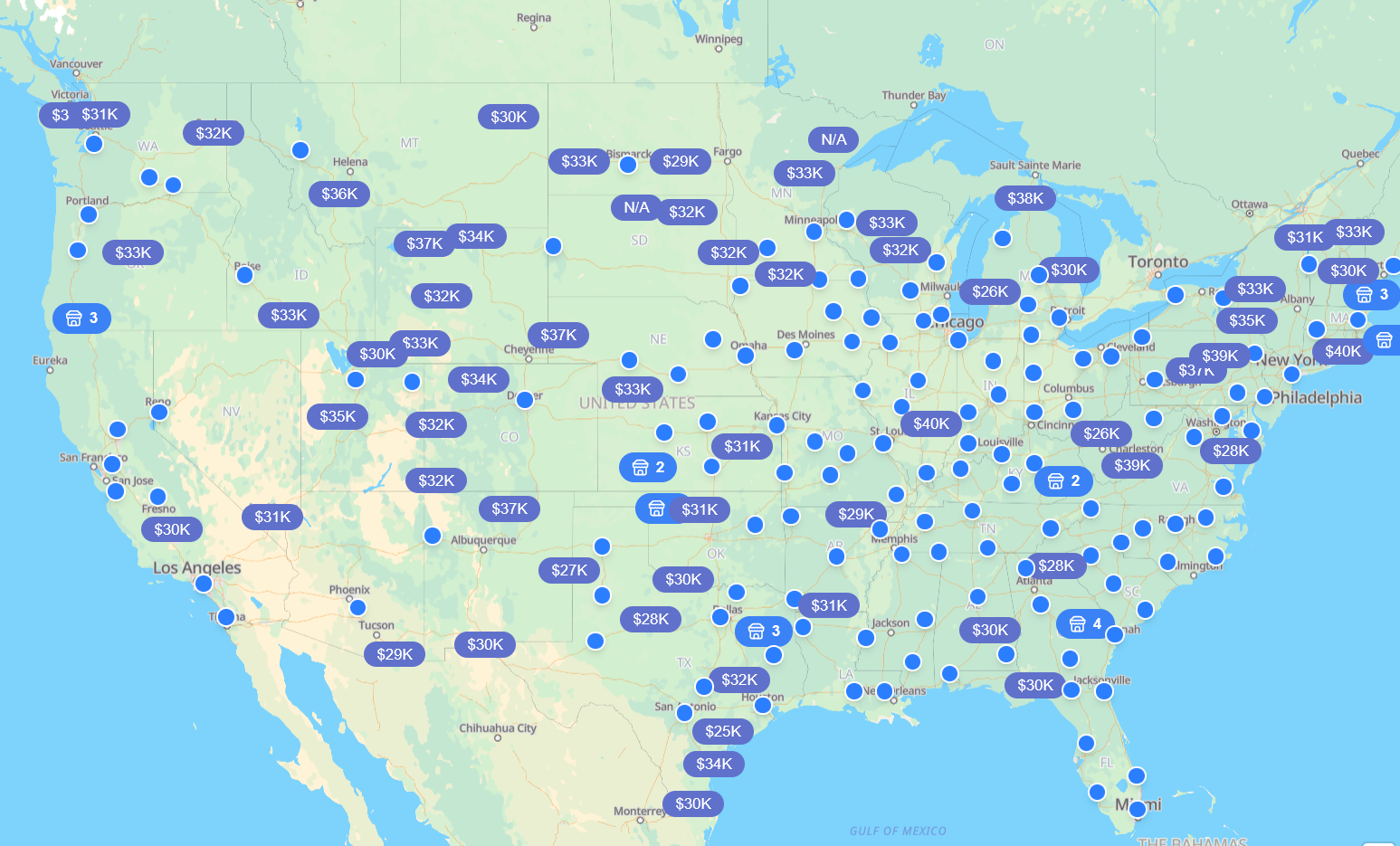 Most people look to search their immediate area and call it done. That's not the move. Visor's mapping feature shows you a much bigger picture, and car prices can vary dramatically (even if only just a few zip codes over).