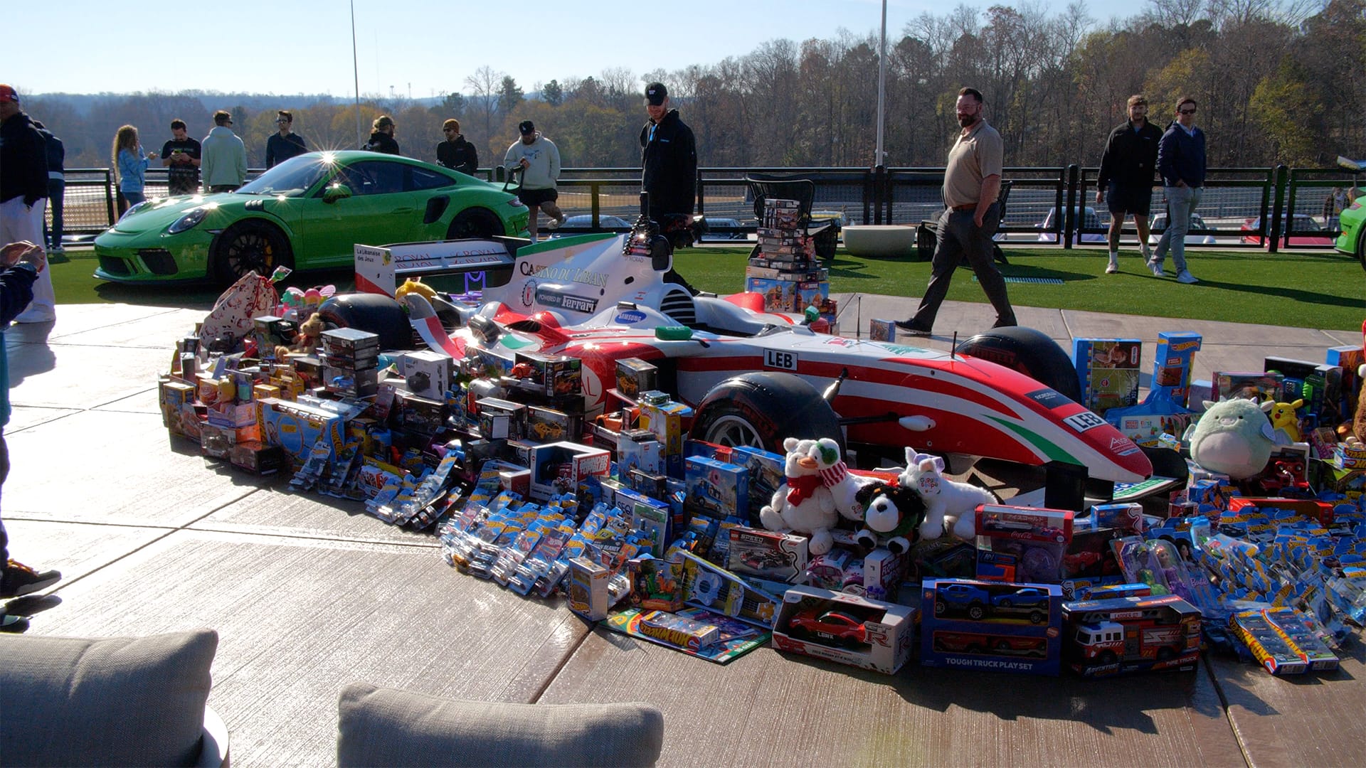 Walk inside, and you could grab some coffee while taking in RUF Porsches, a working Formula car, and a massive pile of gifts stacked around it. Not only was the quantity of the presents impressive, but it was also how many of people contributed. With so many Hot Wheels, remote control cars, and monster trucks, it was great to see people investing in the next generation of car junkies. But it was amazing to see how a love of cars can bring a smile to children's faces, either with their exhaust or generosity.
