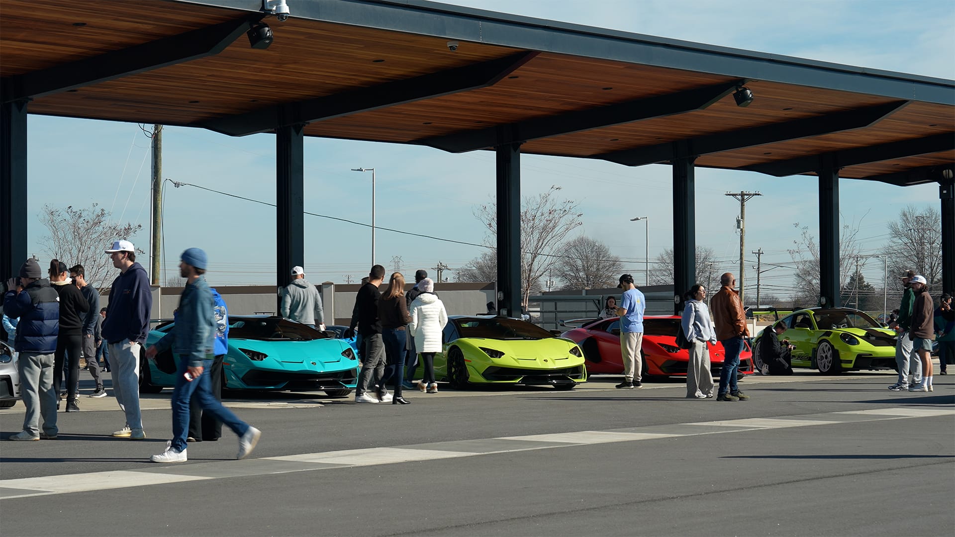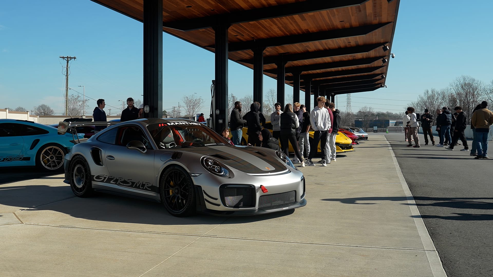 When driving into the event, those who answered the call for enthusiasts were greeted with a handpicked selection of legendary exotics in the staging area. This included a full skittles bag of Lamborghini Aventador SVJs, which were somehow even louder and boisterous in person. Next to them, there sat other legends like a Lamborghini Gallardo Balboni, the Rear Wheel Drive manual Lamborghini. But the newer legend was the Manthey 911 GT3 RS. For those of you who don’t know, take the 911 that looks like it drives on rails around a track, and hand it to the legends at Manthey-Racing GmbH and Porsche’s development center, and what you get is a sub-7-minute Nurburgring weapon. Along with other great Lamborghinis and Porsches, it was a who's who of supercars.